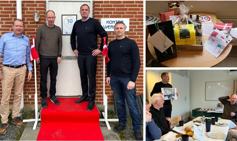 I går markerede vi Carstens 30‑års jubilæum. Han fik (helt særligt) lov til først at møde kl. 06.45 og blev taget imod af kollegaer, familie og gode samarbejdspartnere, som kiggede forbi for at ønske tillykke.