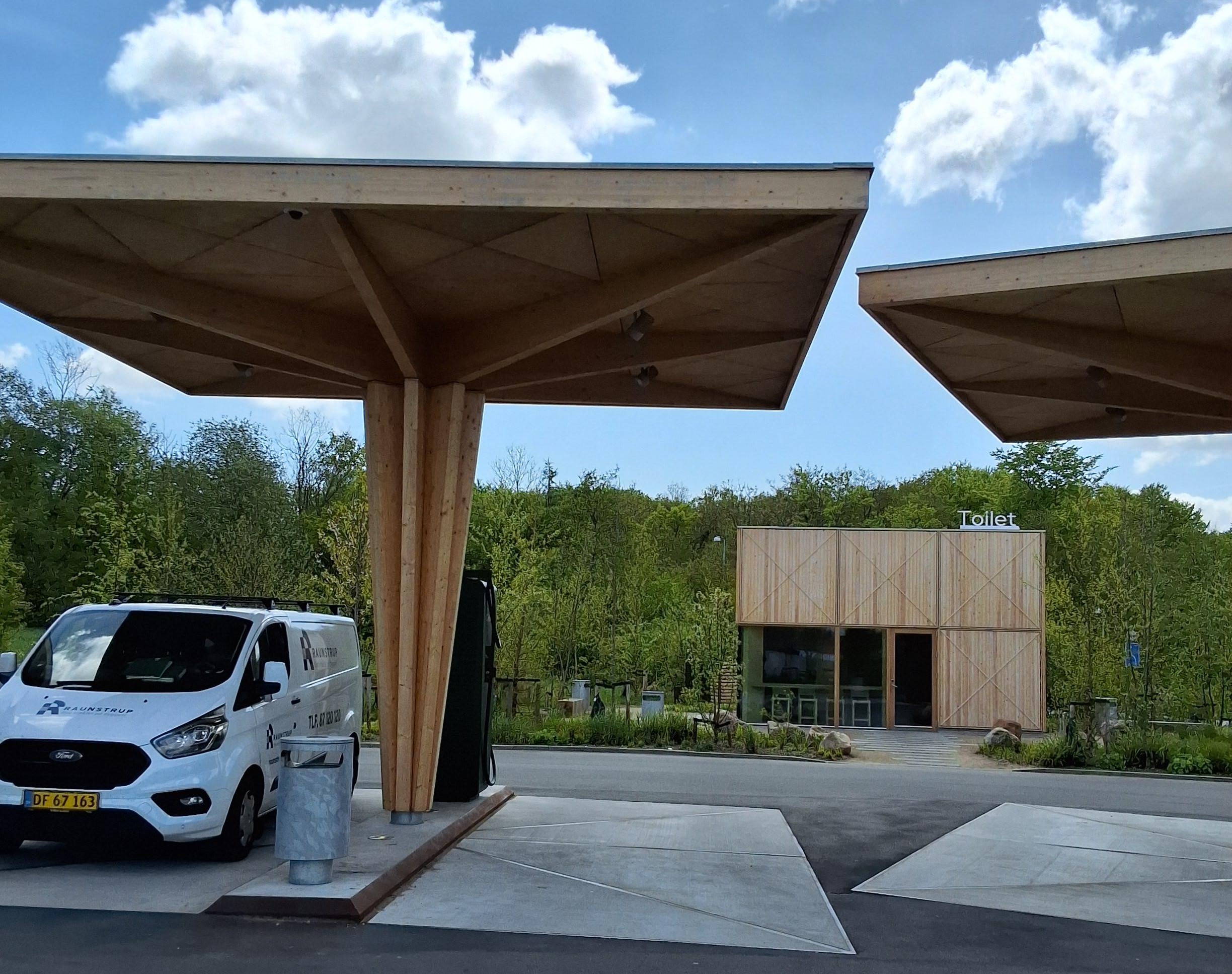 Bygningerne udføres med stort fokus på bæredygtighed. Ifm synlig limtræskonstruktion og træbeklædning indvendig/udvendig.