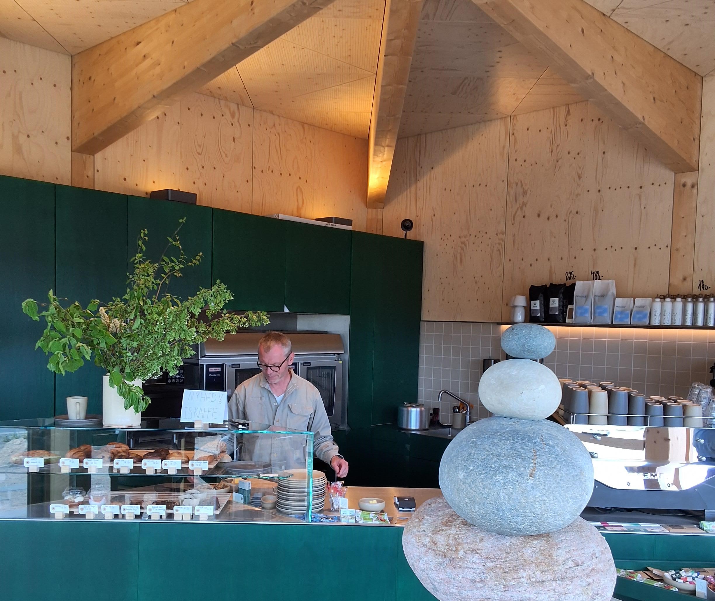 en Cafe, skur og en Toiletbygning til de ventende kunder.