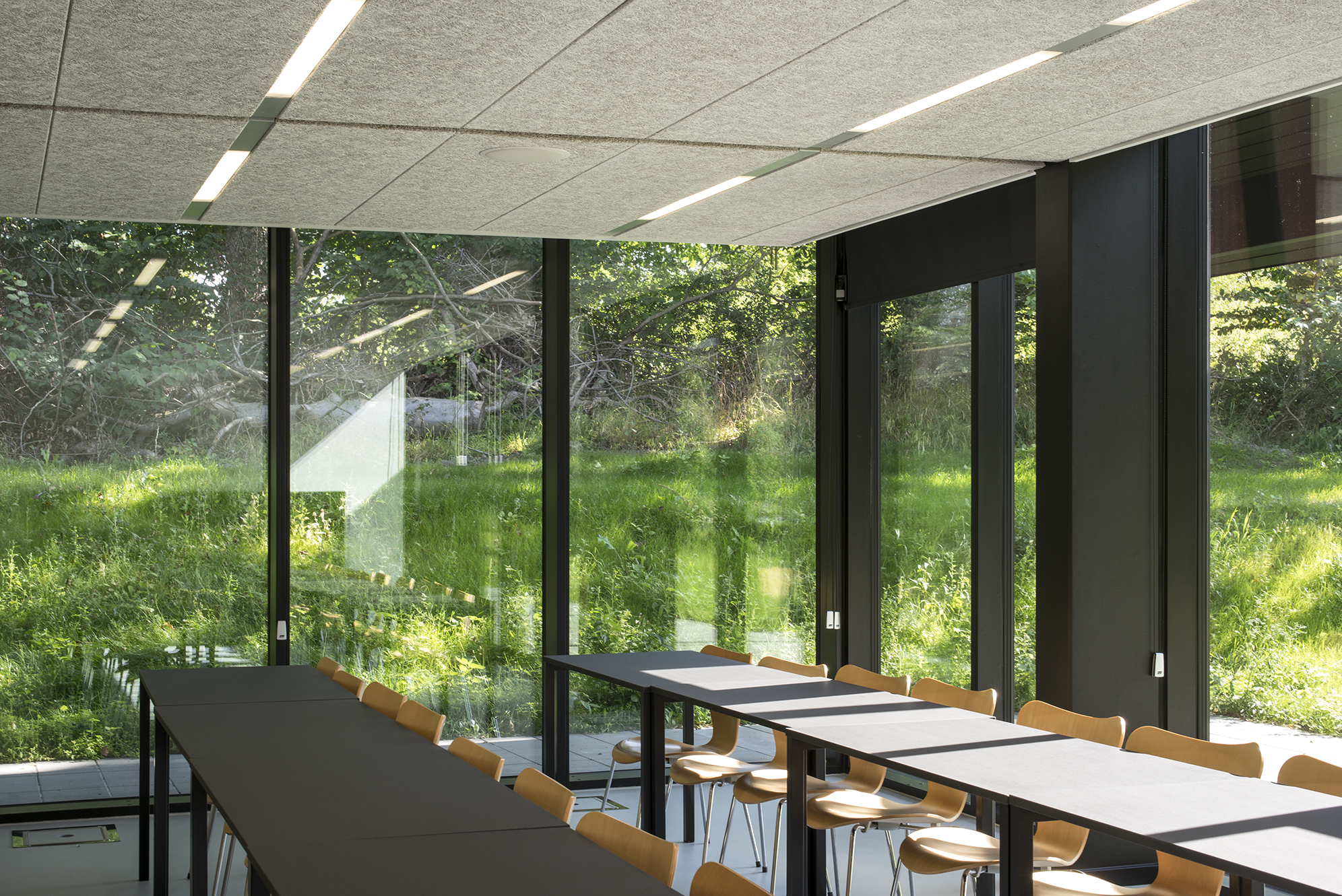 I Jagtens Hus er naturen velkommen inden døre. Med robuste materialer som træ og beton byder huset brugerne velkommen, også i mudrede gummestøvler. Både træ- og beton-gulve patinerer smukt og kan holde til beskidte hundepoter, småsten under vandrestøvlerne eller store menneskemængder i forbindelse med vigtige arrangementer. Materialeholdningen er både praktisk imødekommende og behagelig.