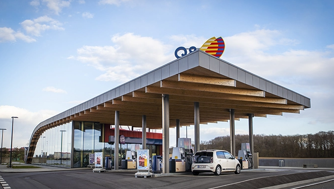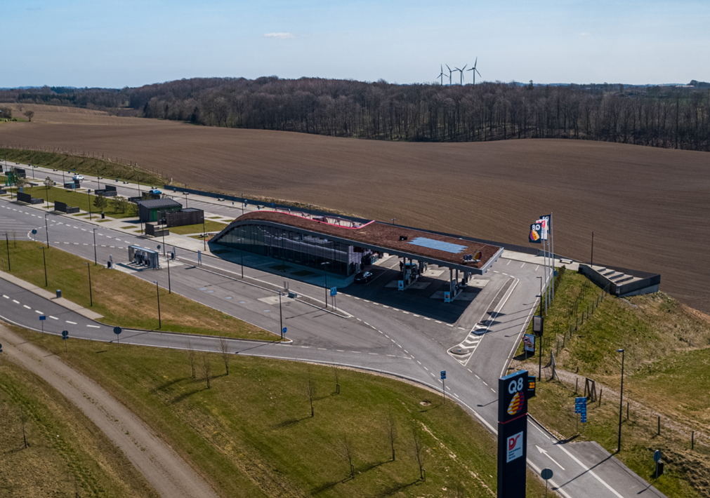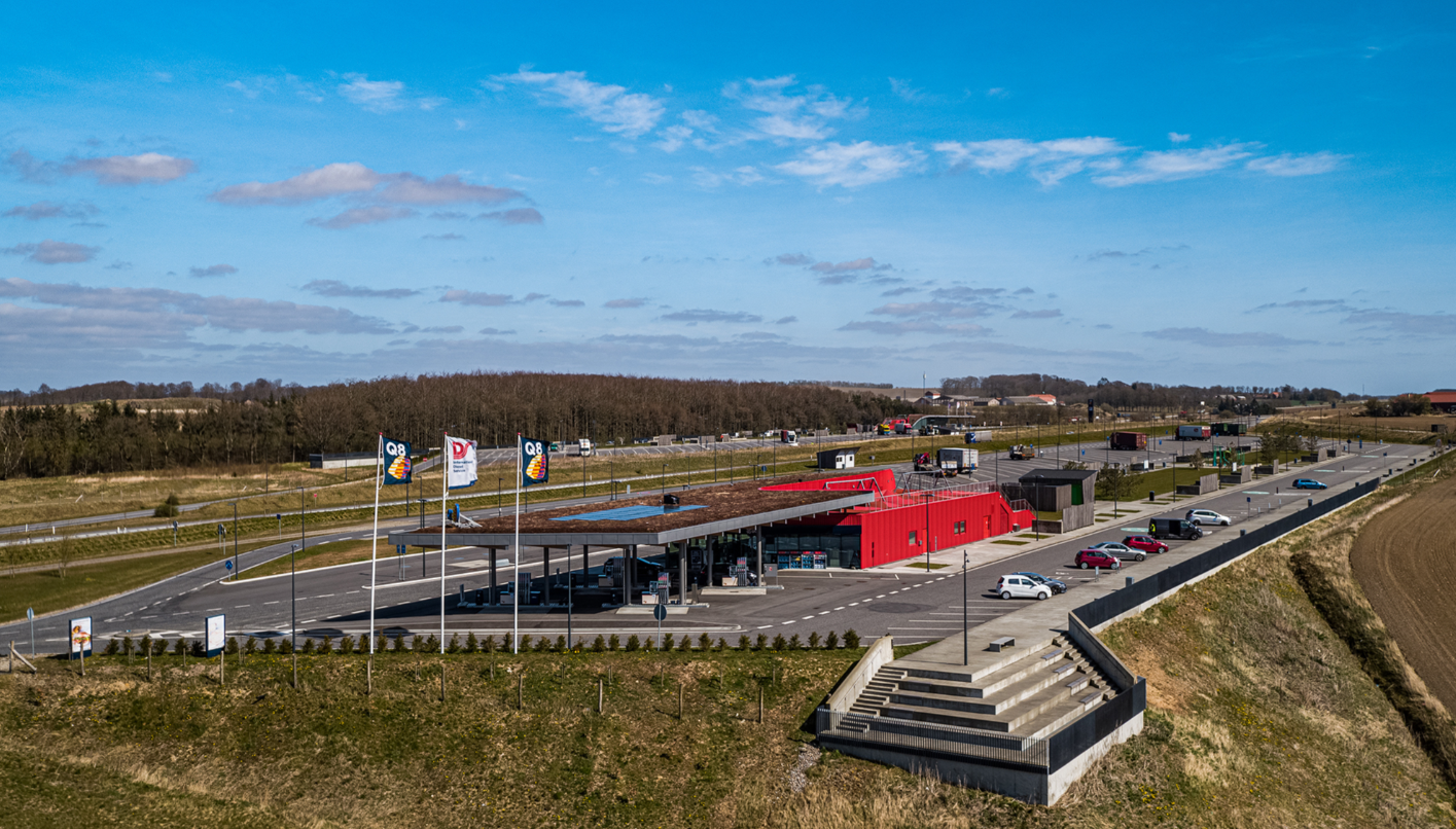 Raunstrup har netop opført landets to flotteste tankstationer i en hovedentreprise for Q8 Danmark A/S. Stationerne har beliggenhed på den nye Silkeborgmotorvej imellem Låsby og Hårup.