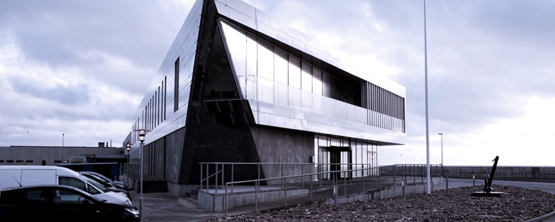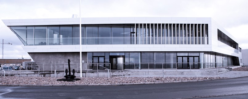 For at skabe optimal sammenhængskraft er bygningen organiseret i en udstrakt grundplan, der reflekterer skibskonstruktionens rationelle opbygning og udnytter den storslåede udsigt over vandet i kraft af den syd- og sydvestvendte glasfacade og det udstrakte altanforløb, der som et skibsdæk omfavner førstesalen mod syd og sydvest.